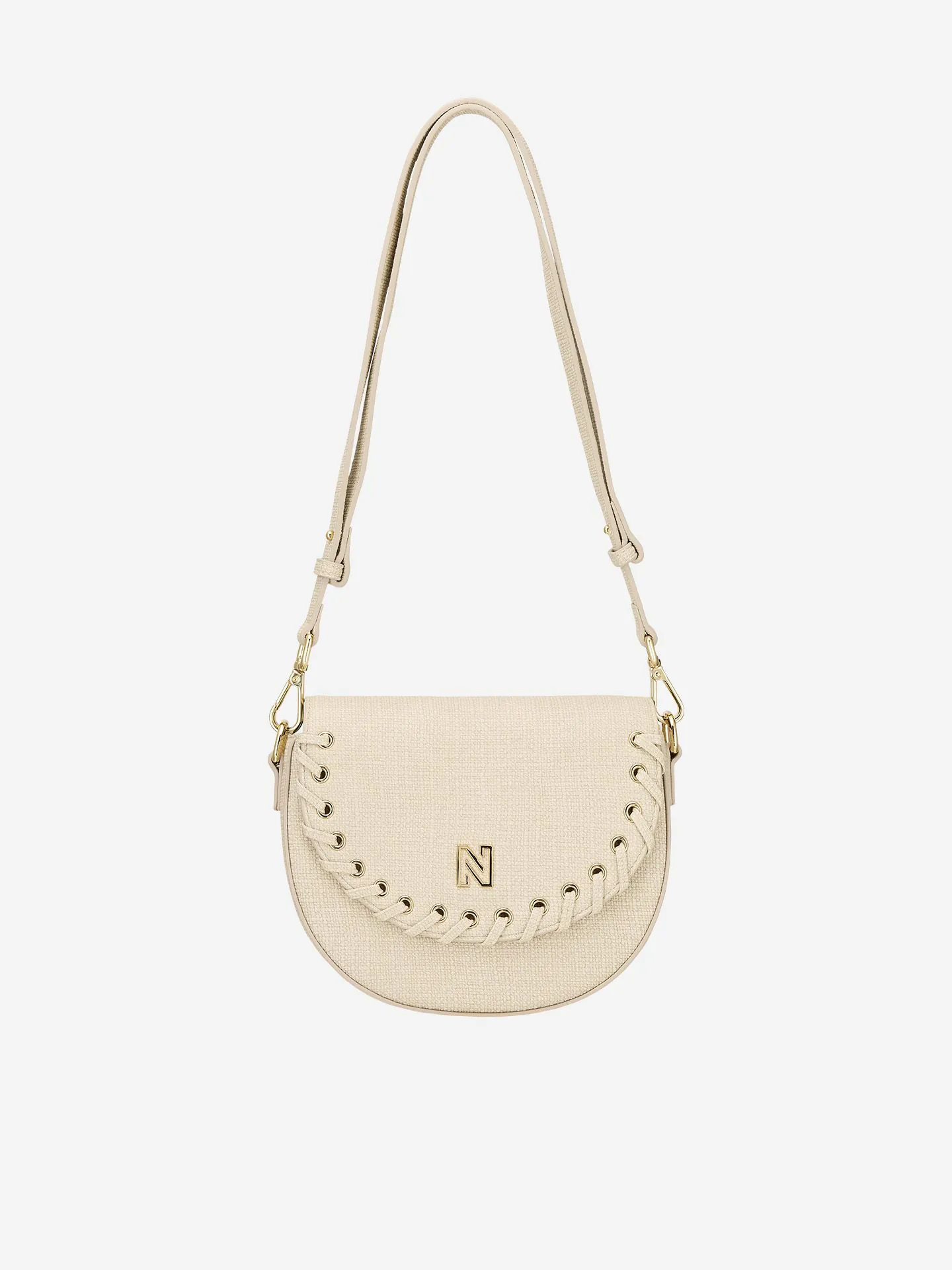 Bolsa tiracolo semicircular com detalhes em renda NIKKIE