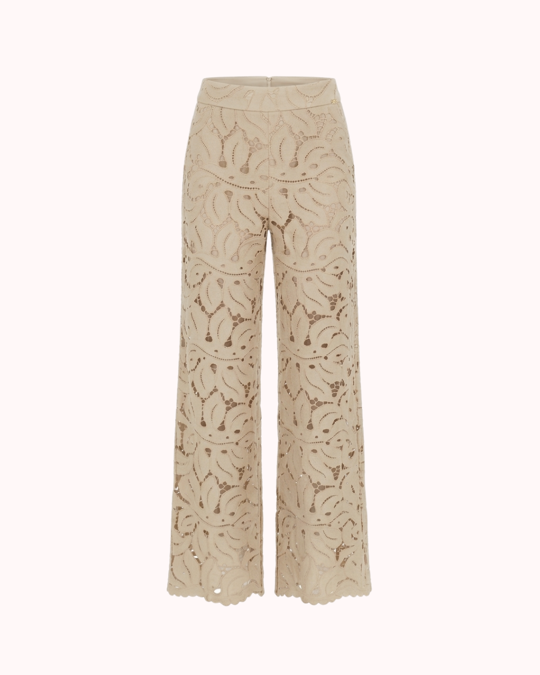 Calças leves e confortáveis com acabamento em renda, ideal para dias mais quentes. O corte fluído garante liberdade de movimentos e um caimento natural.