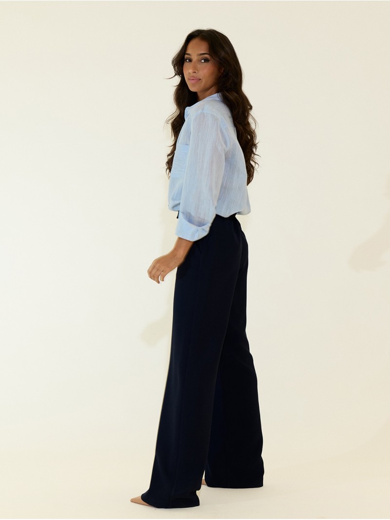 O tom azul marinho é fácil de combinar, adaptando-se tanto a outfits casuais como formais. Perfeita para usar com blusas, camisas ou tops, esta calça é uma peça prática para diferentes ocasiões — trabalho, eventos ou momentos de lazer.