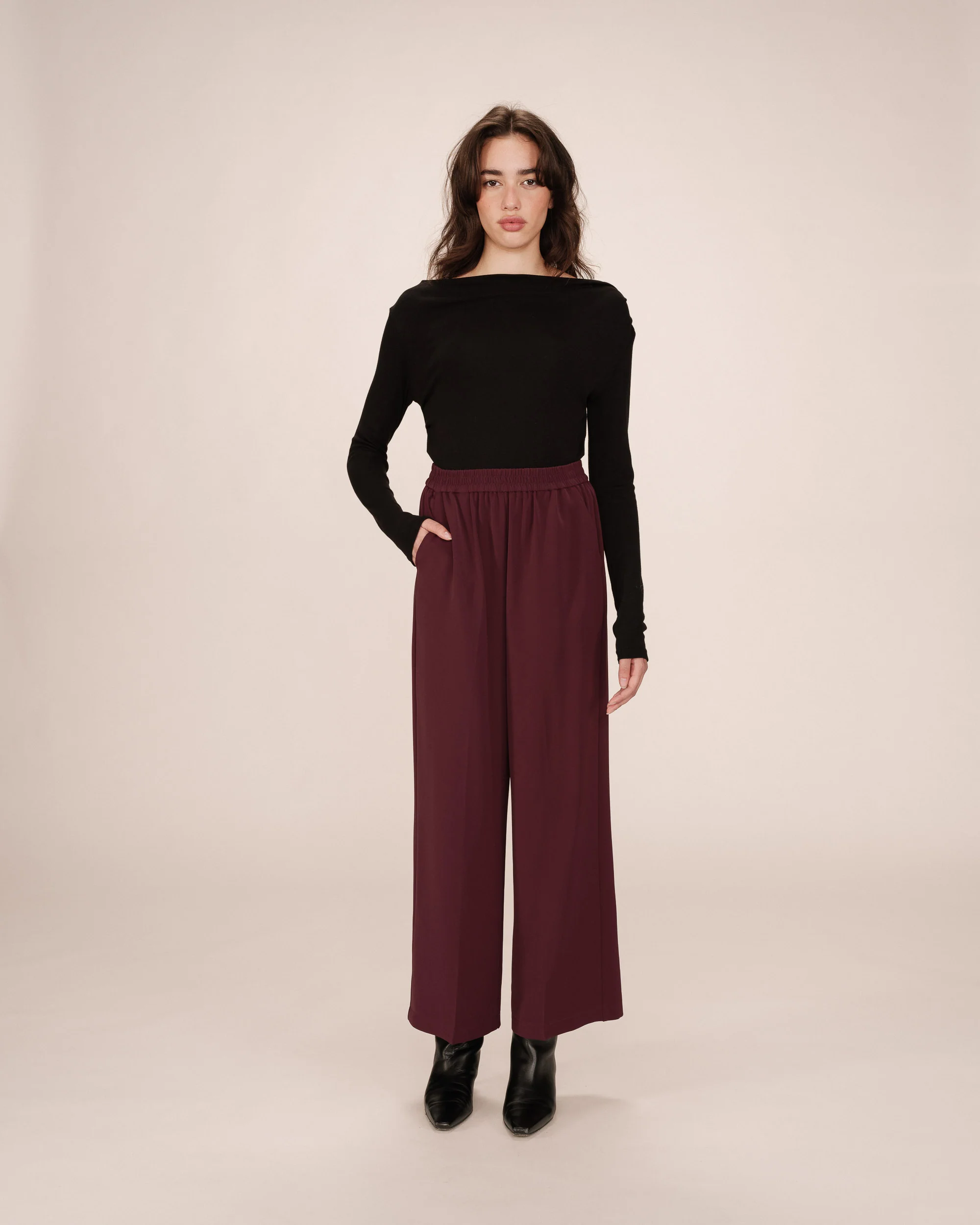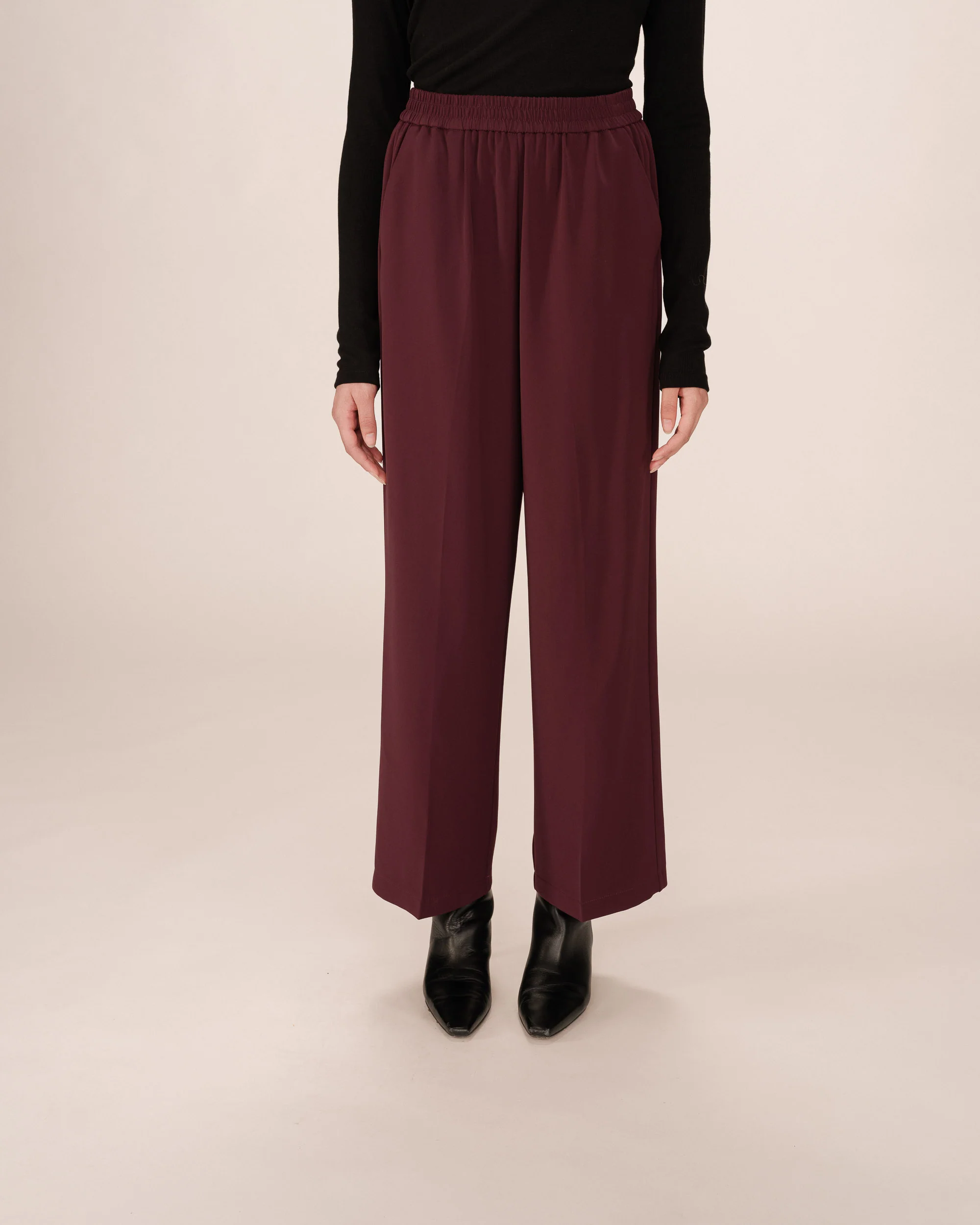 As calças NOBLESSE são um modelo flare com cintura elástica que proporciona uma silhueta descontraída e elegante. Fluídas e leves, garantem máximo conforto ao longo do dia.