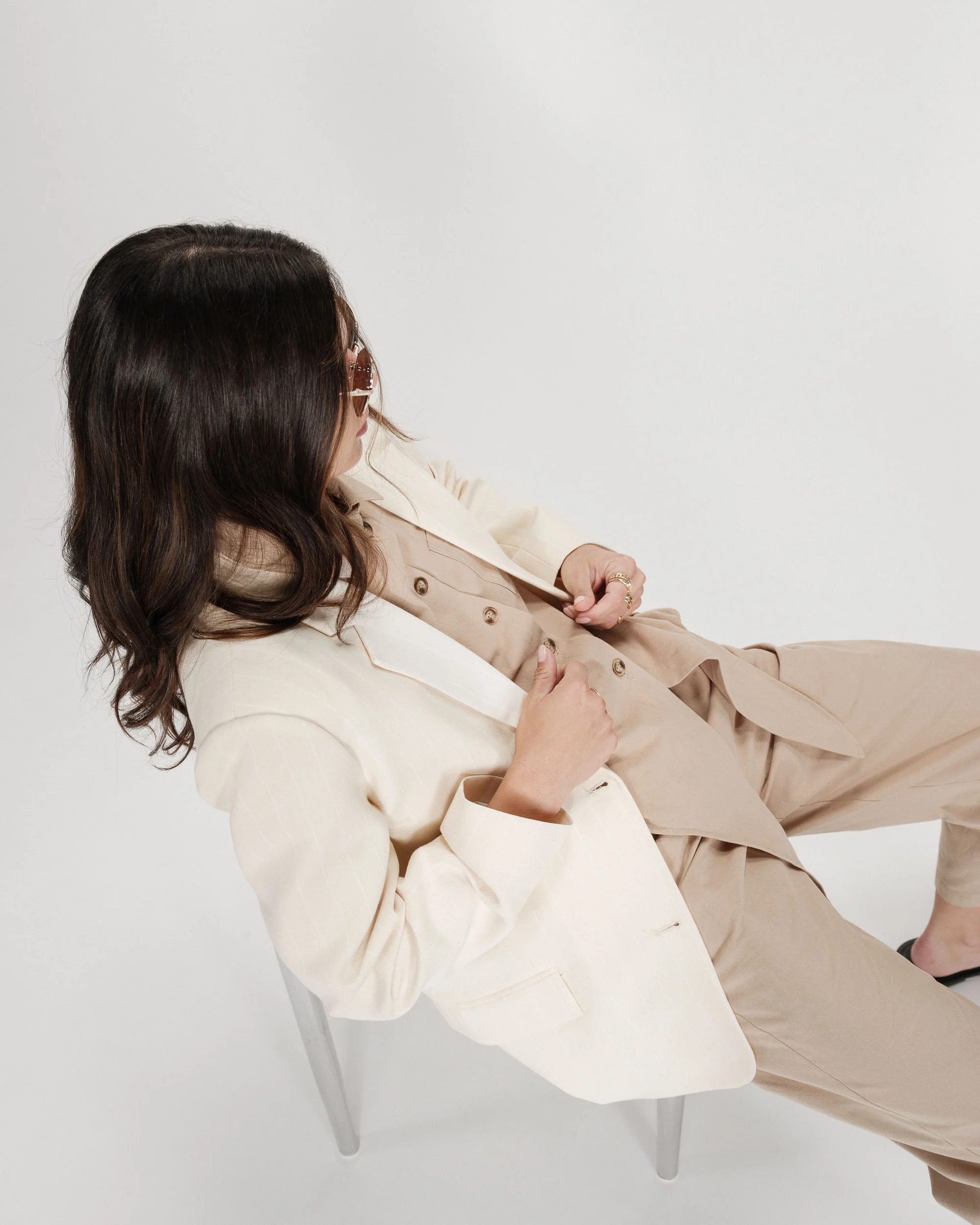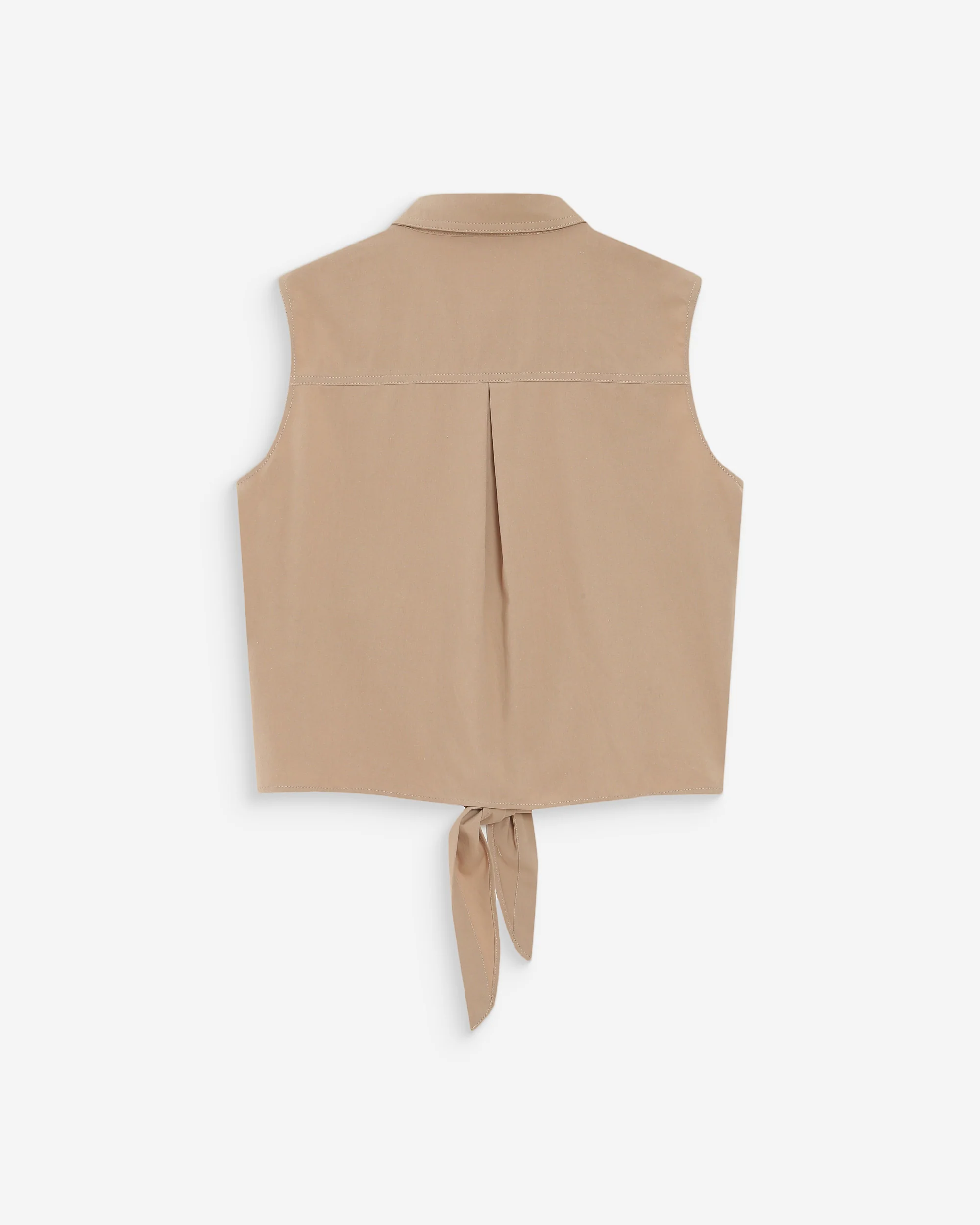 Com corte ajustado, valoriza a silhueta sem comprometer o conforto. A gola clássica de camisa e a carcela frontal com botões trazem um toque inspirado na alfaiataria, enquanto laço frontal adiciona personalidade e permite ajustar o caimento conforme preferir. O bolso aplicado no lado esquerdo do peito complementa o design com um detalhe funcional.