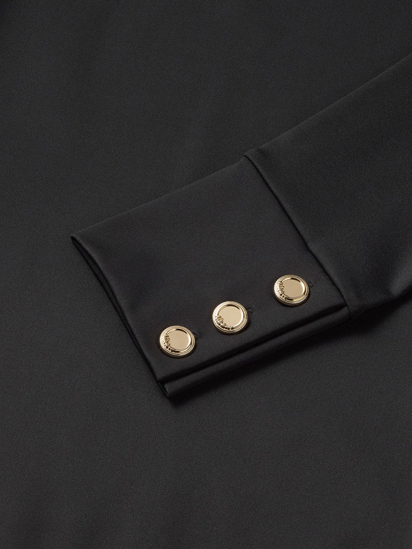 Camisola básica com gola redonda, botões decorativos nas mangas e modelagem ajustada.