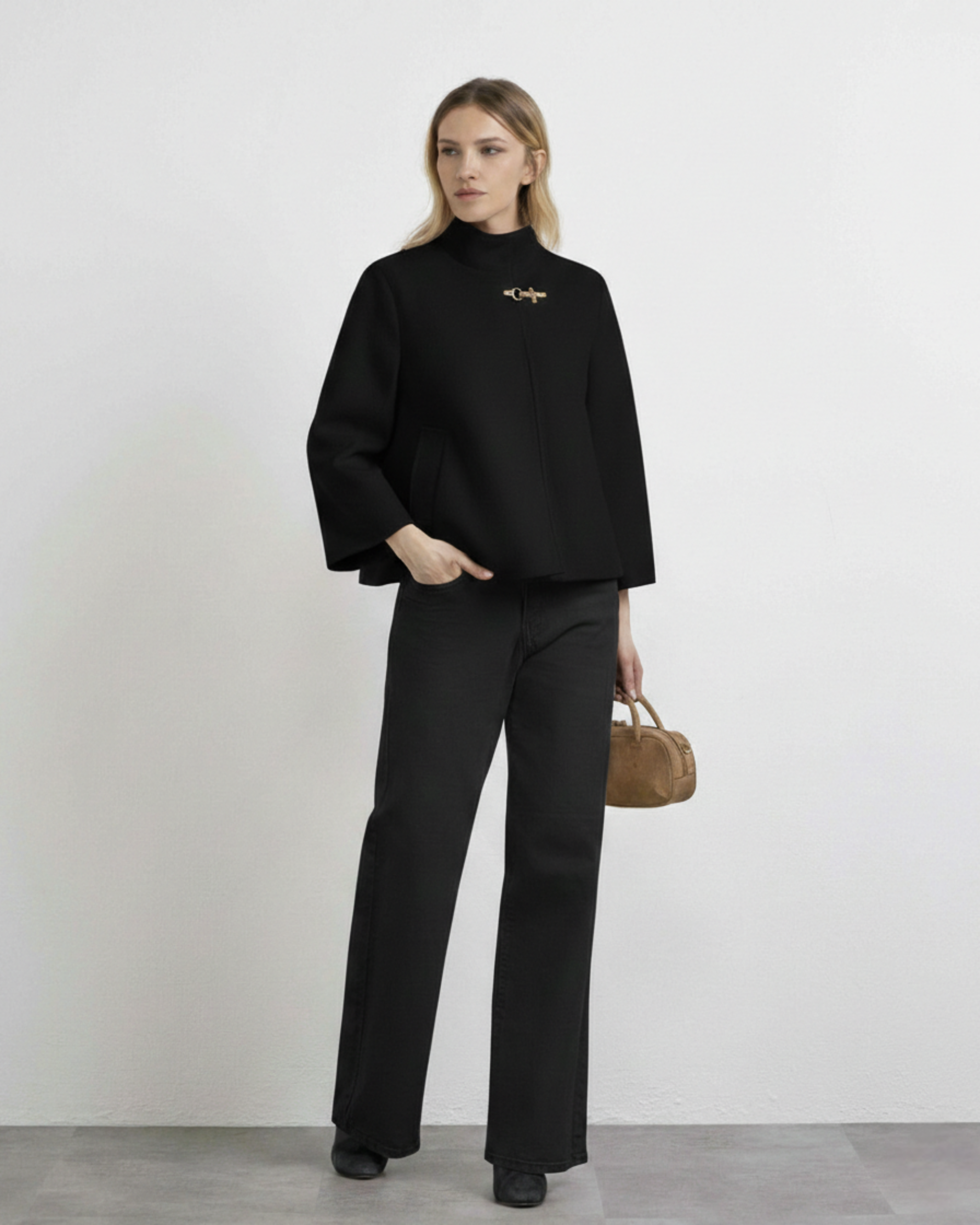 A Capa Curta com Gancho MARKUP é a peça ideal para quem procura um visual sofisticado com um toque contemporâneo. Com um corte estruturado e comprimento curto, adapta-se perfeitamente a looks formais ou casuais.