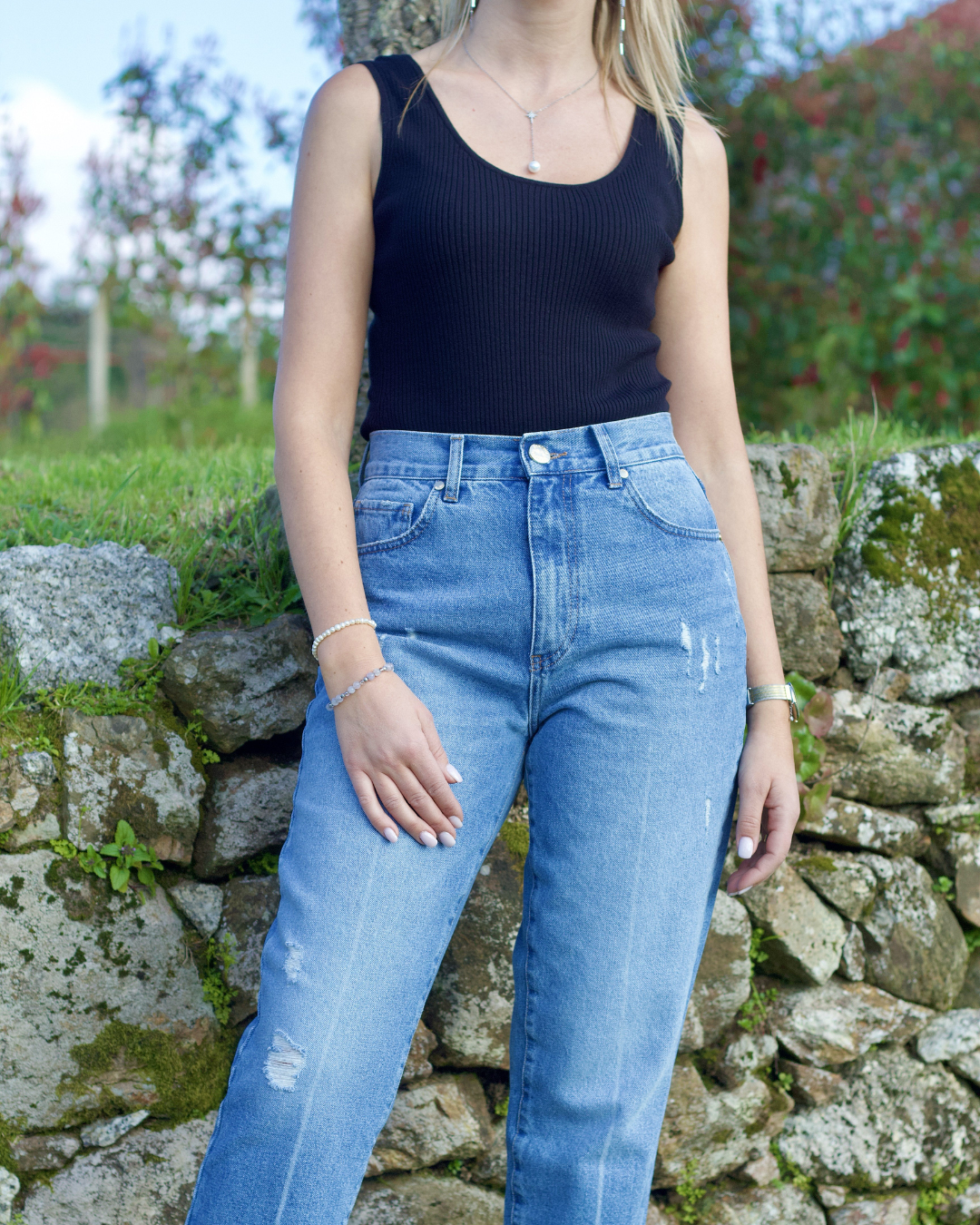 Jeans com efeito de vinca em contraste, ideais para um visual moderno e estruturado. O detalhe da vinca frontal cria um efeito alongador da silhueta, enquanto a ganga de qualidade garante conforto e durabilidade ao longo do dia.